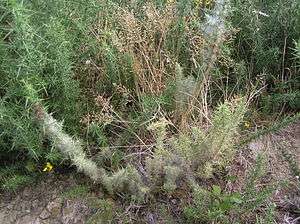 Gorse was introduced to New Zealand by missionaries during the early stages of European colonization[2] and quickly became a popular hedge plant, remaining in widespread use as fence material until the 1950s, when it was largely superseded by wire and posts. It is still a common fence material on the Canterbury Plains, where it was most popular.[3] It established itself very quickly, and the lack of natural predators or other controls meant that it spread rapidly,[2] flowering for longer periods and growing to a larger size than it did in Europe.[4] Gorse is an extremely hardy plant which forms dense thickets over what was once native forest or productive farmland; any attempts to destroy it by burning or spraying often result in rapid, widespread regrowth. The seeds are produced in great numbers and can remain dormant in the soil for extended periods of time.[5]