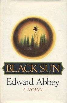 The term "black sun" was used often in Abbey's work.[1] He used it first in his second book, Fire on the Mountain to describe a sketch Billy makes after they discover someone has shot Billy's favorite horse, Rascal.[1] He also uses it twice in his non-fiction book, The Journey Home and once in Abbey's Road.[1]