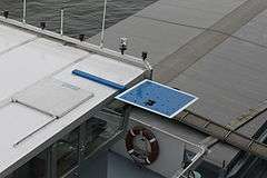 A blue sign or blue board is used by inland waterways vessels within the Trans-European Inland Waterway network when performing a special manoeuvre or passing on the starboard side. On navigable waterways vessels normally pass each other on the port-side, so the display of the blue sign and flashing white light signal intention to pass each other on the starboard-side.[1] This process is known as blue boarding or historically blue flagging.[2][3][4][5]