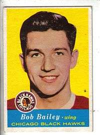 Robert Allan "Bashin' Bob" Bailey (May 29, 1931 – October 24, 2003) was an ice hockey right winger. He spent time with the Toronto Maple Leafs, Detroit Red Wings, and Chicago Blackhawks of the National Hockey League. He was known for being involved with trades for over twenty players and was even traded for Bill Dineen on three separate occasions. He was inducted into the Dayton Hockey Hall of Fame on March 17, 1970 for his time with the Dayton Gems.