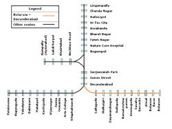 The Bolarum - Secunderabad route (BS) is a rapid transit service of the Multi-Modal Transport System of Hyderabad, India. Spanning 11 stations, it runs between Bolarum and Secunderabad 5 times a day.