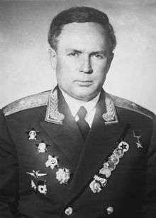 Boris Dmitrievich Kabishev (Russian: Борис Дмитриевич Кабишев; 17 October 1922-5 December 1998) was a Soviet Air Defence Forces (PVO) Lieutenant general and Hero of the Soviet Union. Kabishev flew the Ilyushin Il-2 in combat from July 1943, making 112 sorties and shooting down an enemy aircraft. For these actions he received the title Hero of the Soviet Union. After the war Kabishev held command positions in the Soviet Air Force and graduated from the Air Force Academy and Military Academy of the General Staff. After graduation from the Military Academy of the General Staff, Kabishev led the 3rd Air Defense Corps [1]and 11th Air Defence Army, as well as advising the Polish Country Air Defence Force. Before retirement in 1980, Kabishev served as the deputy commander of the PVO for combat training. After retirement, Kabishev lived in Moscow and worked at the USSR State Committee for Hydrometeorology. [2]