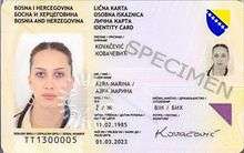 Bosnian-Herzegovinian identity card (Bosnian: Lična karta, Croatian: Osobna iskaznica, Serbian Cyrillic: Лична карта) is a compulsory identity document issued in Bosnia. All Bosnian citizens who are residents of Bosnia and Herzegovina and are over the age of 15 have the right to apply for the national ID card; nevertheless, all Bosnian-Herzegovina citizens that are over the age of 18 must have an Identity Card issued by the police (Ministarstvo unutarnjih poslova - MUP) by the city of residence.
