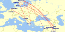 | Beirut | Lebanon | BEY | OLBA | Beirut–Rafic Hariri International Airport |