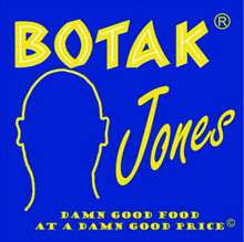 Botak Jones' menu predominantly comprises American cuisine. Select outlets serve only halal food, so as to cater to Muslim consumers.[2] All of Botak Jones' food products are claimed to be free of "chemical flavourings, tenderizers, binders and MSG".[2] Food items are served in relatively large portions, although "Mini-Me" portions are available for order.[6] Botak Jones also offers catering services.[7] In 2009, the company organised an eating contest, where one had to wolf down a "Botak Massive" in the fastest time possible. Winning prizes included a holiday trip overseas.[8]