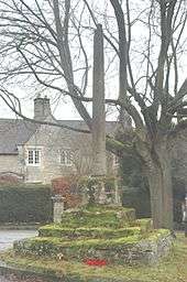 At the centre of Bourton village are the remains of a 14th-century stone cross, The base stands on three square stone steps. The top of the cross has been lost but most of the shaft survives. Stone crosses marked a site for either open-air preaching or a regular public market. Historic England considers Bourton's cross to be for the latter.[3] It is a scheduled monument.[4]