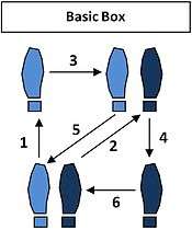 Box Step is a basic dance step named after the pattern it creates on the floor, which is that of a square or box. It is used in a number of American Style ballroom dances: rumba, waltz, bronze-level foxtrot. While it can be performed individually, it is usually done with a partner. This is the most common dance step in the waltz. In International Standard there is a similar step called Closed Change.