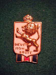 Bundles for Britain, the BWRS and its affiliates have provided a wealth of items for collectors of home front memorabilia. Some of the more common items are button lapel pins. These display the British War Relief emblem of a lion rampant and shield. A high number feature the French motto Dieu et mon Droit, the motto of the British monarch and translated as "God and my right".