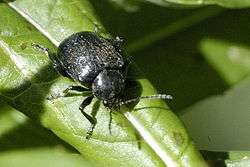 Bromius obscurus (also called the brown and black beetle)[1] is a species of beetle in the Chrysomelidae family, that can be found in the United States,[2] and wide parts of Europe.[3] The colour of the species is black and brown.[4]