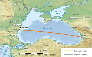 The Bulgaria–Georgia communications cable (BGC) is a Georgian-owned submarine communications cable in the Black Sea linking Poti, Georgia to Balchik, Bulgaria over a distance of approximately 1,200 km. Its landing stations in Balchik then connect to Frankfurt, Germany via terrestrial connection.[1] The only communications cable linking Georgia directly to Europe, BGC is deemed of strategic importance and has been at the center of controversy due to alleged plans to sell it to a Russian-owned company.[2]