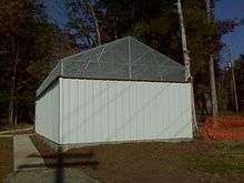 Known also as "Shed at Chydaru", the shed it mostly open to the air except for one room with a desk and a one way mirror looking inwards. There is no official documentation on its purpose.[8][2]