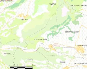 Map of Cases-de-Pène and its surrounding communes