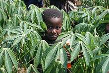 Cassava (Manihot esculenta) production is important to the economy of Democratic Republic of the Congo (DRC). It is one of the country's principal crops, with per capita consumption of 353 kg per year, which is the highest in the world.[1] Zaire, now the DRC, was the world's largest consumer of cassava with Republic of the Congo ranked second in 1996.[2]