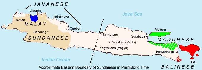 Sundanese is also spoken in some pockets near the border with West Java, especially in Brebes and Cilacap regencies. However, according to some sources, Sundanese used to be spoken as far away as in Dieng Plateau.[17] This former boundary of Sundanese coincides more or less with the isogloss dividing Central Javanese with Western Javanese. Madurese is also widely spoken on Madura and in the northern coat region of Eastern Java
