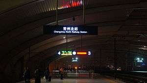 The Changzhou North Railway Station (Chinese: 常州北站) is a high-speed railway station in Changzhou, Jiangsu, China. It serves the Jinghu High-Speed Railway.