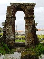 A traditional legend explains the construction of hermitage and the cross that was located in the escarpment overlooking the temple.[12] It was during the 16th century, when the residents of the local village wanted to construct a religious building in Anjos, the place where the navigator Gonçalo Velho Cabral had, along with his crew, disembarked and had a mass in honour of their Atlantic discovery.[12] The residents of the village believed that the best place would be in the lowlands, but the authorities responsible for the project did not understand the popular desire.[12] In fact, the builders began constructing the church on the escarpment overlooking the popular location.[12]