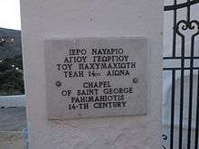 The Chapel of Saint George Pachymachiotis (Greek: Άγιος Γεώργιος Παχυμαχιώτης) is a chapel and a church in the Greek town of Lindos, in Rhodes, dedicated to Saint George.