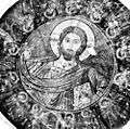The original dome frescoes depicting Christ Pantokrator. Photo taken during restoration work done by the Department of Antiquities in 1972