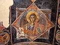 The frescoes were painted in 1598 as seen from the ktitor inscription in the western side of the naos with funds of rich people from the village. The decorative system of the frescoes is with traditional medallions with depictions of Jesus Christ on the vault, friezes of medallions with saints and prophets and full-length portraits of saints under the arcade. Among the images of saints and martyrs are some of the oldest discovered depiction of Saint Sava, depictions of the sainted Pope Sylvester I and St Boniface who are popular in the Catholic art. In the decoration of the church there are a lot of details of influence from the Italian art - the moustaches of some soldiers, half-faced people in the Betrayal of Judas, the knight banner of the centurion St. Longinus in the Crucifixion and others. With the new ideas and skilfully painted frescoes, the church is among the most valuable monuments from that period on the Balkans.