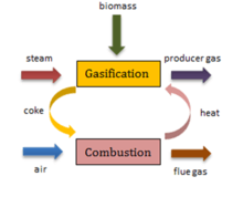 Gasification is the process of converting biodegradable waste materials into synthetic gas without combustion. This process is first used at the Gussing power plant in Austria[5] based on the steam gasification of biomass in the internally circulating fluidized bed.