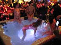 Entertainment columnist Earl Wilson details several experiences involving one-sided female nudity in his book Show Business Laid Bare.[1] In the chapter titled "Cheri Caffaro: A Strange Interlewd," Wilson writes about his experience interviewing actress Cheri Caffaro while she was nude and he was fully dressed.[2]