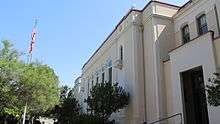 The current Clovis High campus opened in 1969.[4] Clovis High has a library media center, choir and lecture halls, and a drama room built like a small black-box theater. Clovis High School has two gymnasiums, tennis courts (resurfaced in 2007), an aquatics center, baseball field (Merriman Field), and Lamonica Stadium, which is shared with Clovis East High School. Clovis High's Aquatics Center was dedicated to former coach and teacher Jim Coiner on November 5, 2008.[5]
