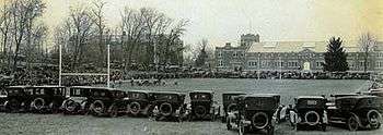 In 1924, the Aggies celebrated their first undefeated season when they finished with six wins, no losses and two ties. The defense was the strength of the team, as they allowed a meager thirteen points to be scored against them over the entire season, including a total of three points over the final seven games.[3] The team was proclaimed by the New York Times to be among the best in the country, and was led by the school's first All-America candidate in captain, Martin "Red" O'Neill.[4]