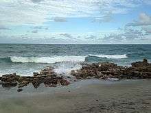 The park, which is almost 15 acres, includes approximately 2,610 feet of beach frontage (most of which is guarded) and 600 feet of intracoastal waterway frontage.[2] The most prominent feature of the beach is the natural limestone, which is part of the Atlantic Coastal Ridge.[3] These rocks, as well as the reefs, are inhabited by marine wildlife, including fish, sea turtles, eels, sharks and marine worms.[1][3]