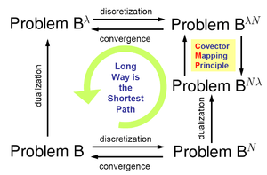). The sequence of operations must be done carefully to ensure consistency and convergence. The covector mapping principle asserts that a covector mapping theorem can be discovered to map the solutions of Problem