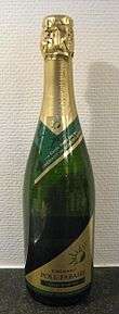 The designation Crémant de Luxembourg dates from 4 January 1991 when the Marque Nationale: Appellation contrôlée Crémant de Luxembourg was introduced. A rectangular label on the rear of each bottle testifies to the wine's authenticity and quality based on an examination of its colour, clarity, bouquet and taste. There must be a pressure of at least 4 bar in each bottle.[2] Luxembourg is the only country outside France entitled to use the term "crémant".[3]
