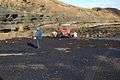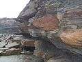 Snab Point, 500 metres (1,600 ft) south of The Carrs, is a sheltered bay with the Alcan aluminium smelting plant on its south side. Embedded in the small cliffs of Snab Point are the remnants of fossilised trees. The beach area is littered with the remnants of fossilised wood and small seams of coal can be seen in the cliffs. Depending on the tides and wind, vast swathes of sea coal is washed up within the bay. The area was formed during the carboniferous period some 310 million years ago, when the current land mass was in a region below southern Spain, more than 1,000 miles (1,600 km) south of its present position.