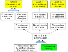 This approach tends to converge on a single root cause. In the illustrated case, the root cause of the above UDEs is seen as being a faulty handbrake.