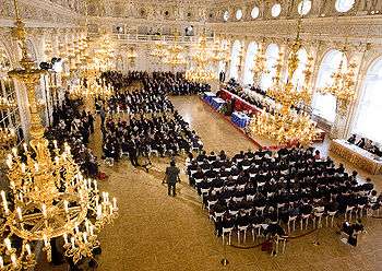 Klaus' chances to be reelected were boosted when Snítilý announced he would vote for Klaus prior to the session.[36] Surprisingly, in his address on 15 February 2008 before the joint session of parliament, Klaus stated he supported holding the presidential elections as public ballots and not as secret ballots as he demanded before.[37] Klaus also delivered a significantly more nationalistic and euroskeptical speech than the week previously. This was taken as an indication that he knew he had the votes to win and no longer needed to moderate his feelings.