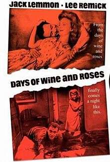 Days of Wine and Roses is a 1962 drama film directed by Blake Edwards with a screenplay by JP Miller adapted from his own 1958 Playhouse 90 teleplay of the same name.