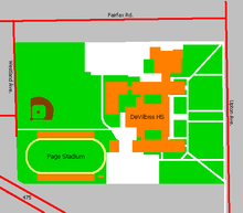 Thomas A. DeVilbiss High School was a public high school in Toledo, Ohio, United States from 1931 to June 1991. It was part of the Toledo Public School District and served students from the following elementary schools: DeVeaux, Elmhurst, Grove Patterson, Longfellow, Mayfair, McKinley, Nathan Hale, Old Orchard, and Whittier. The building still sits at 3301 Upton Avenue near the Central Avenue intersection.