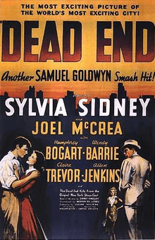 Dead End is a 1937 crime drama film directed by William Wyler. It is an adaptation of the Sidney Kingsley 1935 Broadway play of the same name. It stars Humphrey Bogart, Joel McCrea, and Sylvia Sidney. It is notable as being the first film appearance of the Dead End Kids.