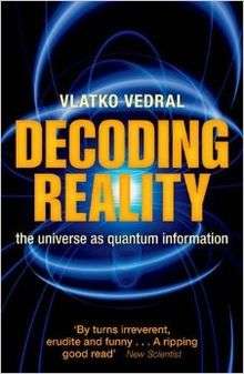 Decoding Reality: The Universe as Quantum Information is a popular science book by Vlatko Vedral published by Oxford University Press in 2010. Vedral examines information theory and proposes information as the most fundamental building block of reality. He argues what a useful framework this is for viewing all natural and physical phenomena. In building out this framework the books touches upon the origin of information, the idea of entropy, the roots of this thinking in thermodynamics, the replication of DNA, development of social networks, quantum behaviour at the micro and macro level, and the very role of indeterminism in the universe. The book finishes by considering the answer to the ultimate question: where did all of the information in the Universe come from? The ideas address concepts related to the nature of particles, time, determinism, and of reality itself.