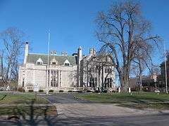 Delaware Avenue Historic District is a national historic district located at Buffalo, New York, United States, and Erie County. It is located along the west side of Delaware Avenue (New York State Route 384) between North Street to the South and Bryant Street to the North. When listed on the National Register of Historic Places in 1974, the district encompassed 17 contributing buildings and 1 contributing structure reflective of when Buffalo had more millionaires per capita than any city in America, and this was once Millionaires' Mile. The mansions were built between about 1890 and World War I and reflect Renaissance Revival and Gothic Revival style architecture. Notable buildings include the Westminster Presbyterian Church (1858), the George and Charles Williams Houses (1894, 1896) by McKim, Mead & White, Stephen M. Clement House (1913) by Edward Brodhead Green (now Greater Buffalo American Red Cross Building), Seymour Knox House (1915) by Charles Pierrepont Gilbert, George Brewster Matthews House (1901), Thomas R. Lockwood House (1888), Buffalo Association for the Blind (1898) by Esenwein & Johnson, and Charles W. Goodyear House / Oracle Charter School (1903, formerly Bishop McMahon High School) by Edward Brodhead Green.[2][3]