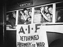 Former prisoners of war were given a high priority for repatriation back to Australia and discharge.[8] Planning for the recovery of prisoners of the Japanese, most of whom had been held in harsh conditions, had begun in 1944 and the 2nd and 3rd Australian Prisoner of War Reception Groups were established at Singapore and Manila respectively in August 1945. By the end of September most of the prisoners recovered from Singapore, Java and Sumatra had been returned to Australia along with about half of those recovered from the Bangkok area. Transport shortages delayed the repatriation of Australian prisoners from Formosa, Japan and Korea, but almost all were on their way home by mid-September.[9]