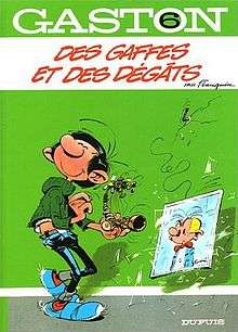 Des gaffes et des dégâts, written and drawn by Franquin, is the sixth album of the original Gaston Lagaffe series. The 59 strips of this album were previously published in Spirou magazine.