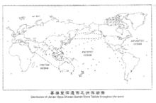 The sutra was translated a total of eight times from Sanskrit to Chinese between 679-988 CE.[2] It gained wide circulation in China, and its practices have been utilized since the Tang dynasty, from which it then spread to the rest of East Asia. The Uṣṇīṣa Vijaya dhāraṇī is associated with Mount Wutai, which in the Chinese Buddhist tradition is considered the bodhimaṇḍa of Mañjuśrī. Sacred stone tablets with the Uṣṇīṣa Vijaya dhāraṇī carved into them have been distributed widely in some regions of the Far East.[1]
