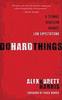 Do Hard Things: A Teenage Rebellion Against Low Expectations is a popular Christian book authored by Alex and Brett Harris, founders of The Rebelution. It was published by WaterBrook Multnomah,[1] a division of Random House, on April 15, 2008.[2]