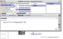 Dr. Geo is shipped with its source code and the developer tools. Therefore its code can be edited and recompiled from Dr. Geo while it is functioning. This design, inherited from Pharo Smalltalk, makes easy to test new ideas and new designs.