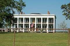 During the American Civil War of 1861-1865, the mansion was saved from a fire by Union General Godfrey Weitzel.[4] However, the outbuildings burned down.[4] Meanwhile, the fields were used as a camping ground by the Confederate States Army and the Unionists.[4] The Texas Rangers hoisted Bonnie Blue Flag, a flag of the Confederate States of America, on top of the house.[4]