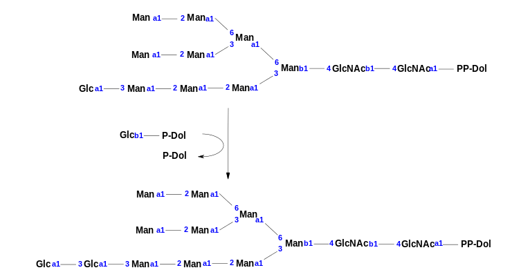 2. Runge, K.W.; Robbins, P.W. (1986). "A new yeast mutation in the glucosylation steps of the asparagine-linked glycosylation pathway. Formation of a novel asparagine-linked oligosaccharide containing two glucose residues". J. Biol. Chem. 261 (33): 15582–15590. PMID 3536907.