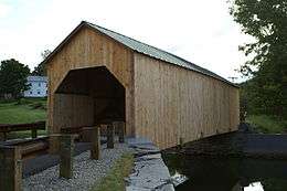 - ↑ Nelson, Joe. "East Fairfield's Covered Bridge - Open To Traffic". Vermont Covered Bridge Society News website. 2009-07-06.