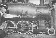The oilfired steam locomotive No 1903 with a total length of 5.80 m (19 feet) from tip of pilot to end of tank couple and a height of 1,295 mm (51 inches) from the top of rail to the top of stack was of the 2-6-0 type.[6] The locomotive had some technical innovations, such as a valve control without eccentrics, which was easy to adjust and to maintain. The locomotive had automatic couplings and a bespoke oit burner, for which Coit filed a patent.[5]