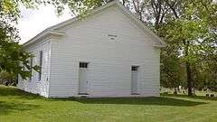 The Ebenezer Methodist Episcopal Chapel and Cemetery is a historic church located northwest of Golden, Adams County, Illinois. The church was built in 1858-59 for the local Methodist Episcopal congregation. The church has a vernacular Greek Revival design; while the style was common in Illinois before the Civil War, the church is now the only one of its type in the county. The church is a white sided building on a limestone foundation; it is topped by a gable roof with a simple entablature at either end. The church's cemetery, located to the west of the building, has had burials since 1857 and contains both members and non-members of the church.[2]