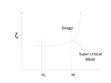 For high subsonic flows, the Critical Mach number (M1cr) is a characteristic value of considerable importance. It is the Mach number for which sonic conditions are reached locally in the flow field i.e. there will be no shocks. To minimize shock losses and profile losses, the turbo-machine should be operated below M1cr. The Mach number range can also be extended beyond M1cr by carefully designing blade shapes.[1]