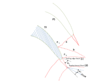 [5] Shock is formed in transonic turbines at the trailing edge, when the Mach number reaches unity. When the Mach number is increased further, the normal shocks transform to oblique shocks. The shock formed on the pressure surface will impinge onto the suction surface of the blade and is reflected back as a shock. The incident shock on the suction surface will produce a pressure rise. The viscous layer near the impingement point increases its momentum and thickness to overcome the pressure rise in that region, resulting in separation of the localized boundary layer.